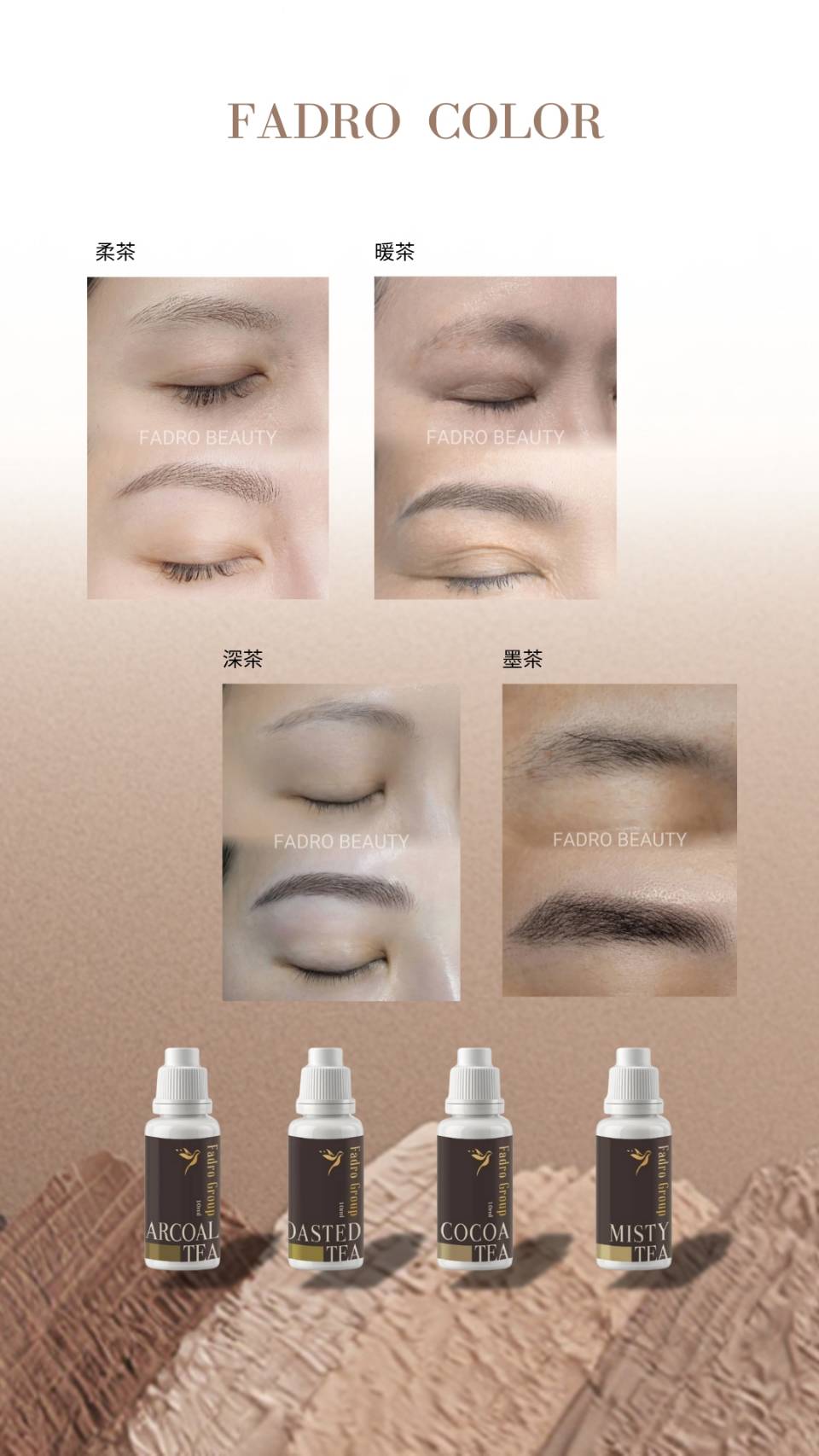 飄眉(線條眉)專用,此系列需調配顏色不單用,只要5瓶互相調配至少可達30種以上顏色,上市至今已經超過15年,顏色穩定且線條留色率很高,高價收費的眉毛必須量身訂製,在顧客面前為她調配,讓顧客倍感尊榮,且可以讓顧客留下深刻的好印象。