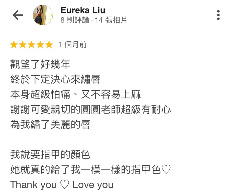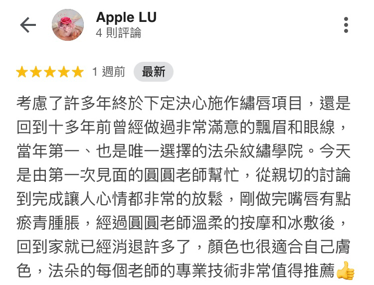 A:請參考圓圓老師幫自己繡唇,每天修復的紀錄文章