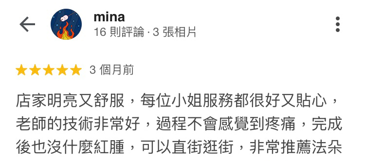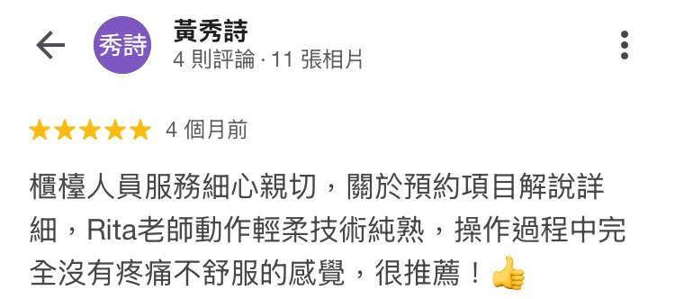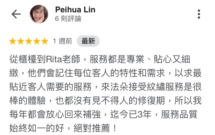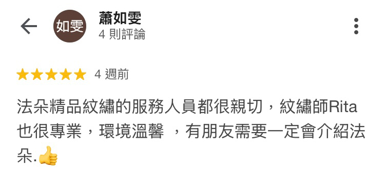 A:不會的,我們的老師擁有豐富的紋繡經驗,透過熟練的手法,搭配專業的紋繡產品,請放心過程不會痛哦!
